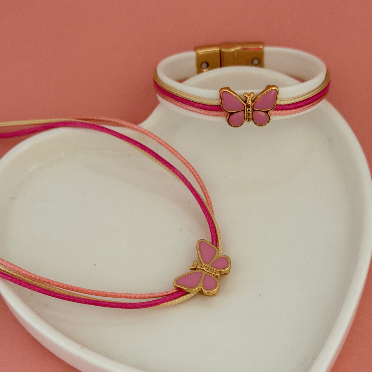 O colar proporciona um visual moderno e feminino. O destaque fica por conta do delicado fio com pingente de borboleta, símbolo de transformação, liberdade e leveza.